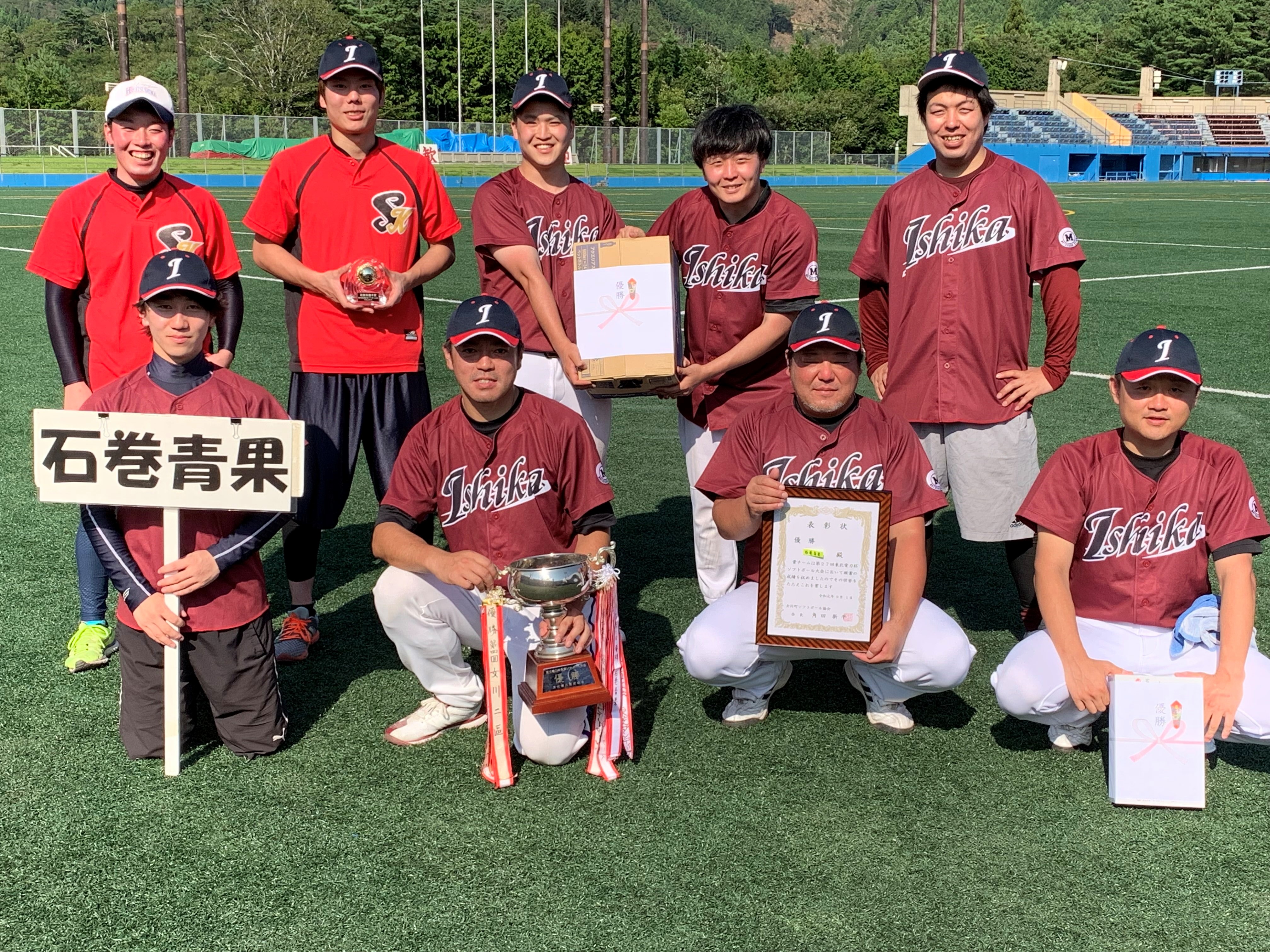 石巻青果チームはキャッチボール愛好会の2名が石巻青果職員、仲卸、市場関係者を集め創部しました。創部2年目にして公式戦初優勝を手にしました!