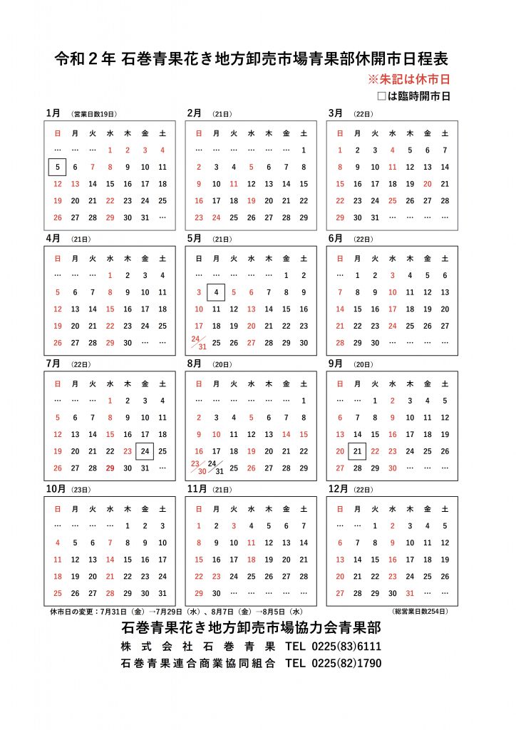 令和2年(2020年)石巻青果花き地方卸売市場青果部 休開市日変更のお知らせ