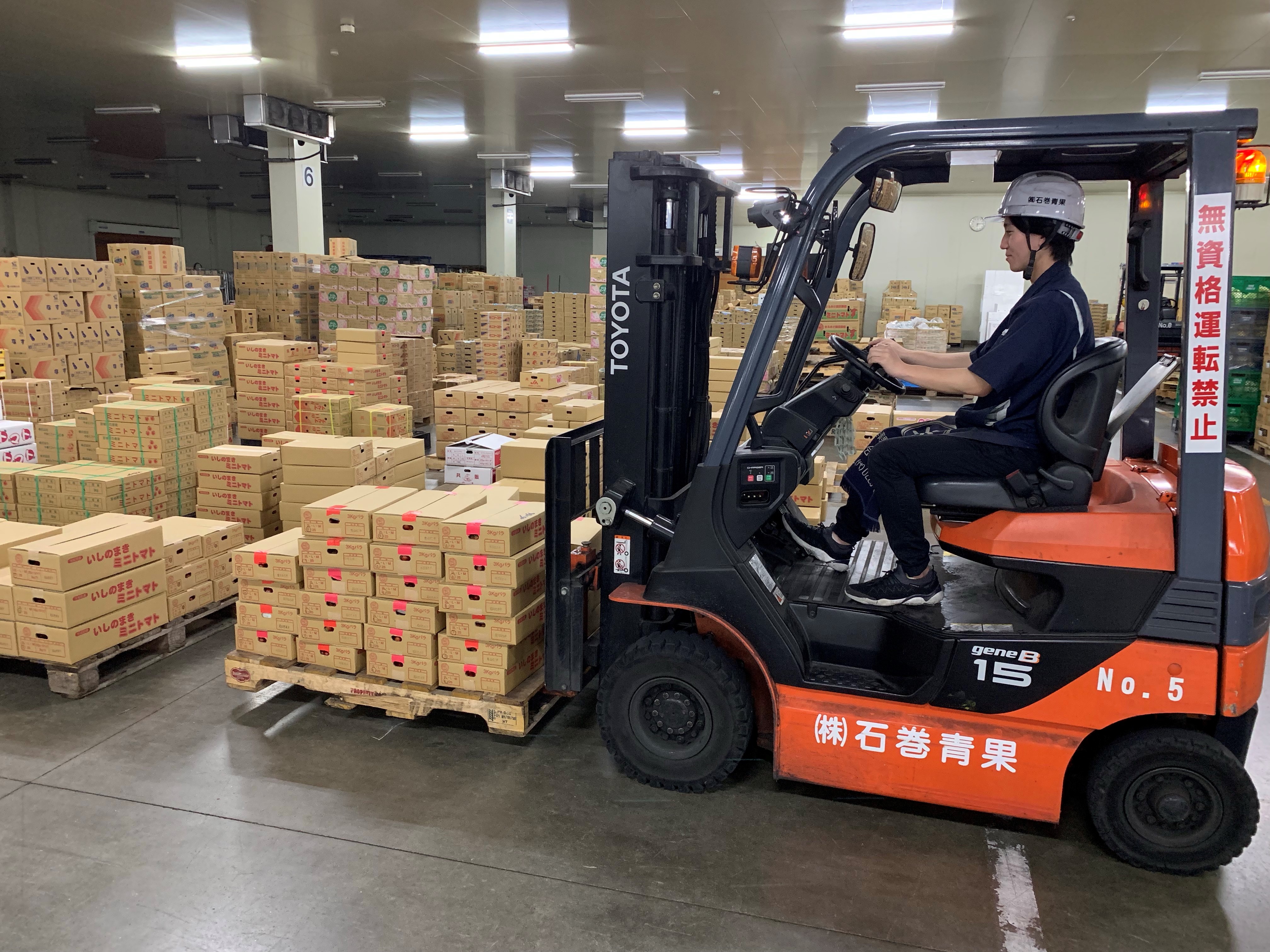 分荷が終えた青果物は運送会社によってトラックへと積み込まれます
