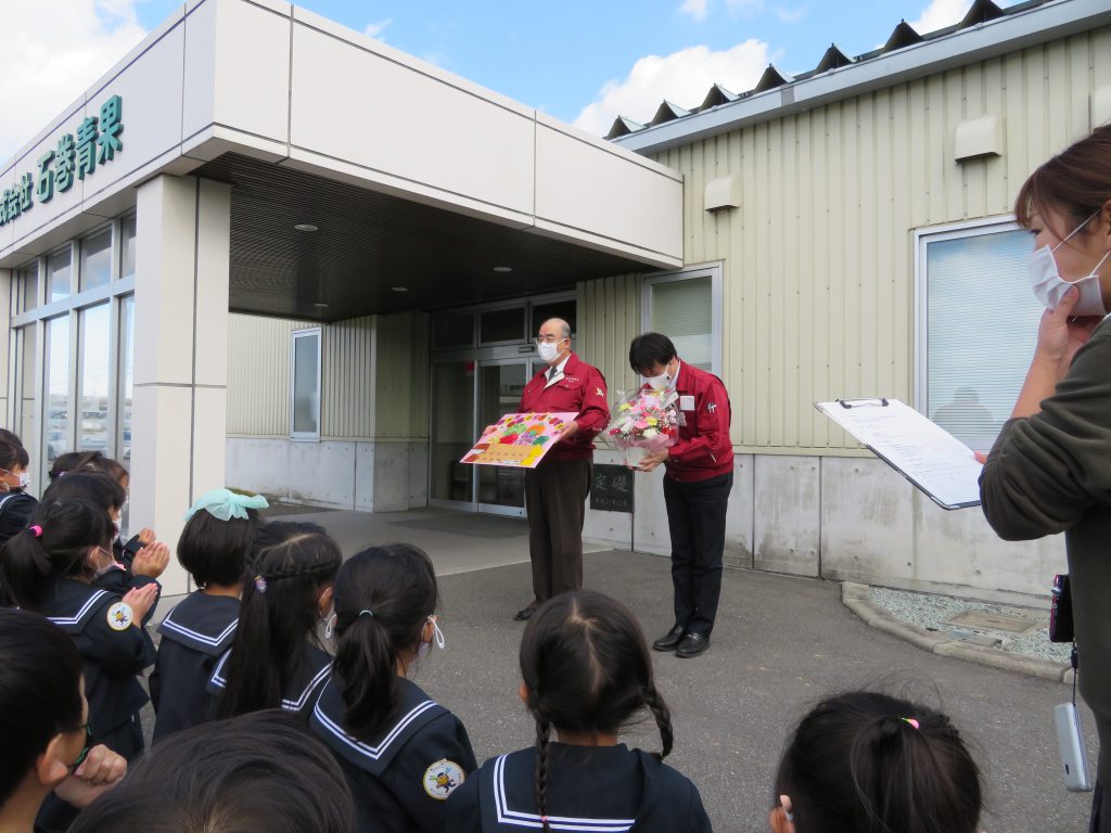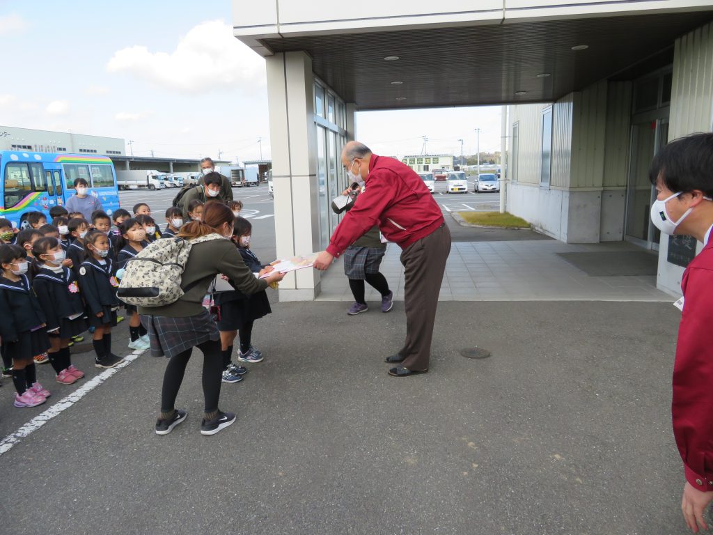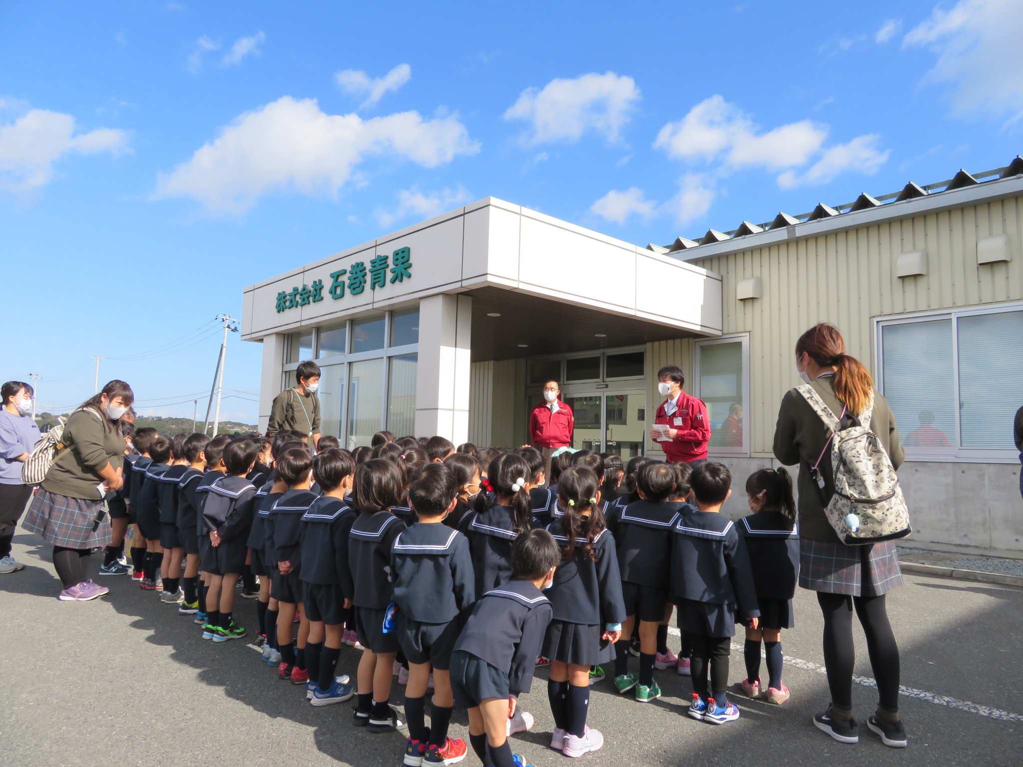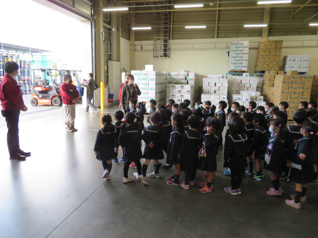 先日、矢本はなぶさ幼稚園の園児さん60名近くが市場見学にきてくれました