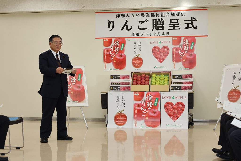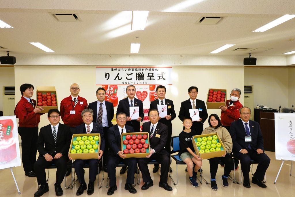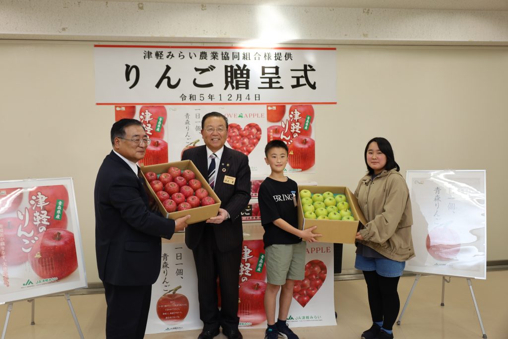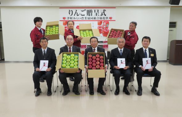 震災後から毎年、 JA津軽みらい 様より石巻市、東松島市、女川町 の小学生達へ りんご を贈呈していただいております。